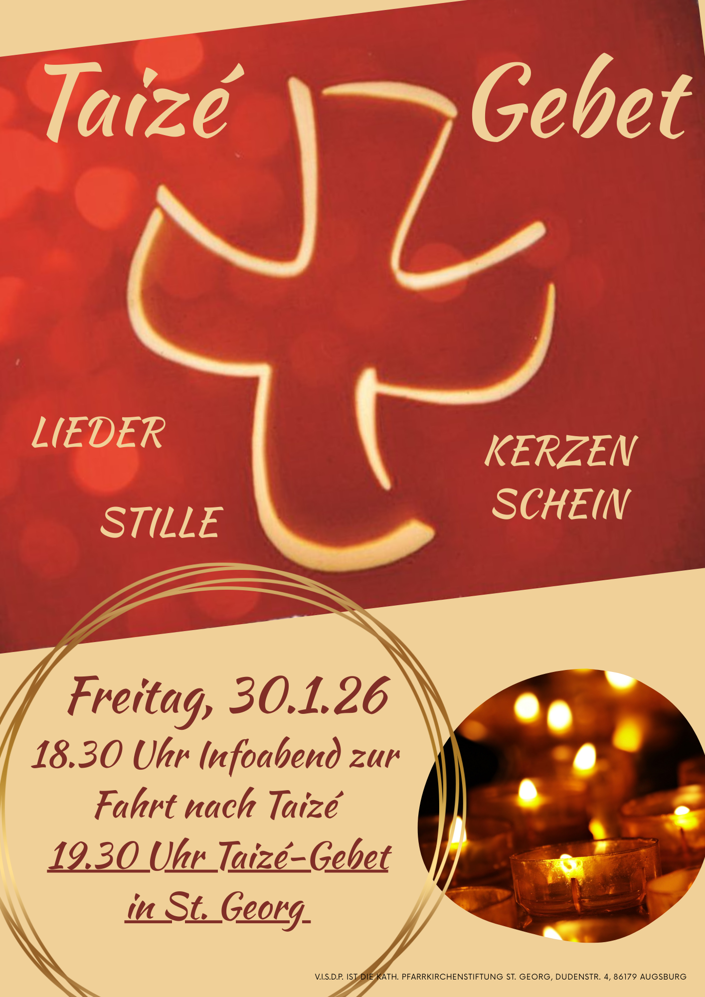 * Fr, 30.01.2026, 18.30 Uhr, Infoabend zur Taizefahrt im Mai im Dachsaal St. Georg