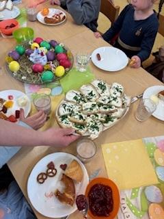 Im Anschluss an die Andacht fand in den Gruppen ein gemütlicher Osterbrunch statt. In einigen Bereichen wurde dieser auch gruppenübergreifend gestaltet, was den Austausch und das Gemeinschaftsgefühl unter den Kindern zusätzlich stärkte.