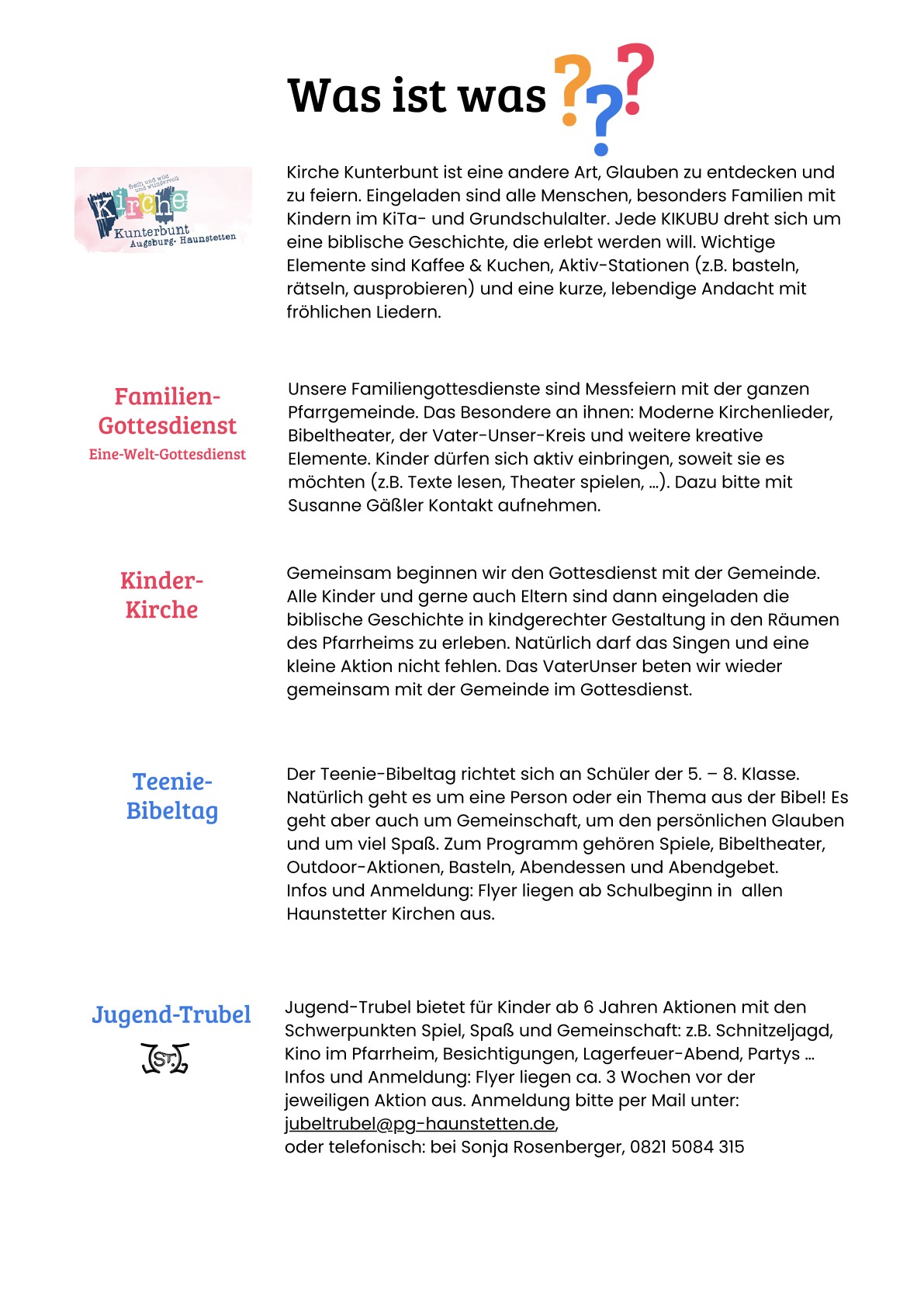 Unserer Familien-Newsletter mit Veranstaltungsübersicht bestellen: Mail an: susanne.gaessler(at)bistum-augsburg.de
